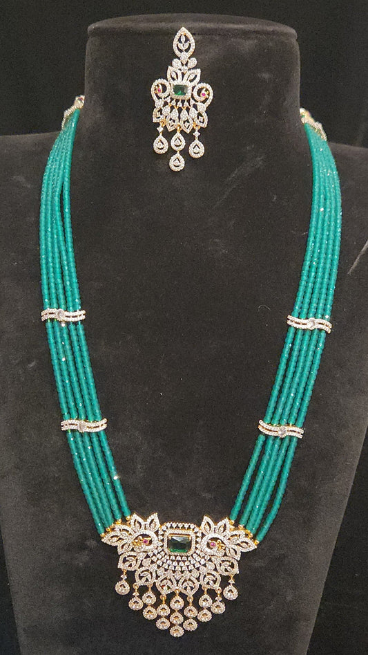 8-Layered Green CZ Bead Haram Set with Pachi Kundan Pendant