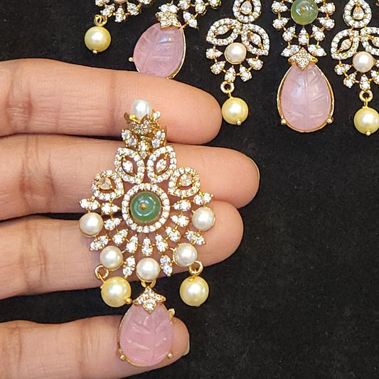 Regal Layered CZ Bead Peacock Pendant Haram Set