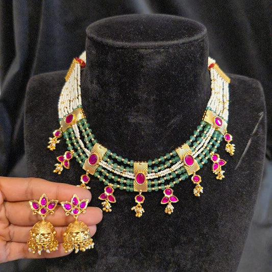 Kundan Onyx Bead & Pearls Choker