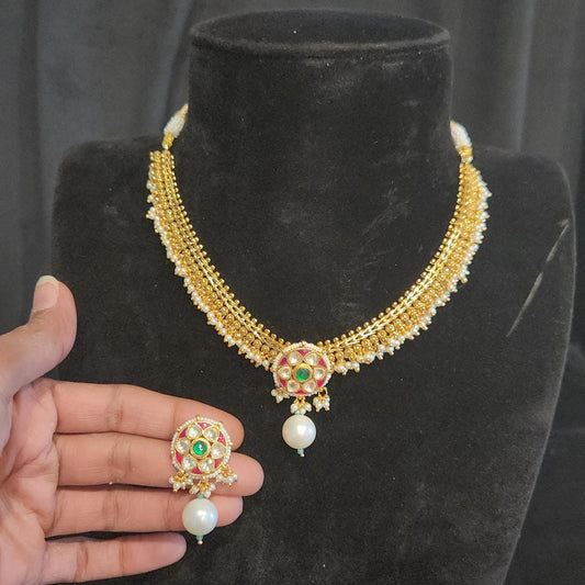 Pachi Kundan Necklace Set with Sugar Bead & Pearls