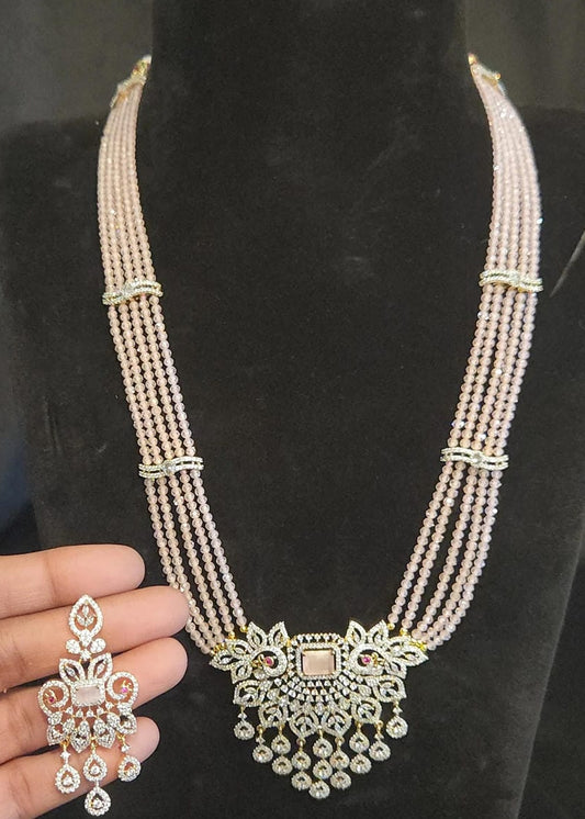 4-Layered Baby Pink CZ Bead Haram Set