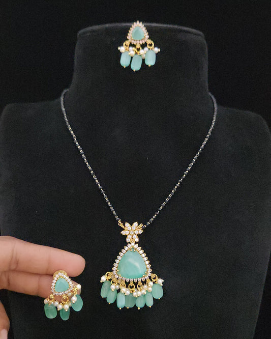 Geometric Double Eight Stone Triangle Pendant Black Bead Chain