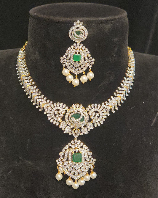Elegant Diamond Finish Designer Emerald Necklace Set