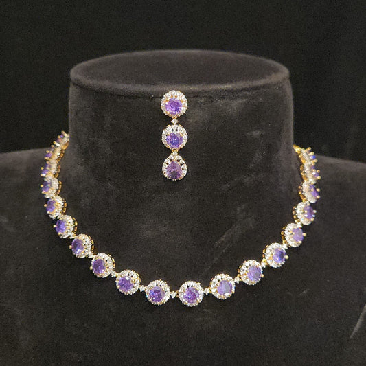 Brilliant Diamond Finish Purple Stone Necklace Set