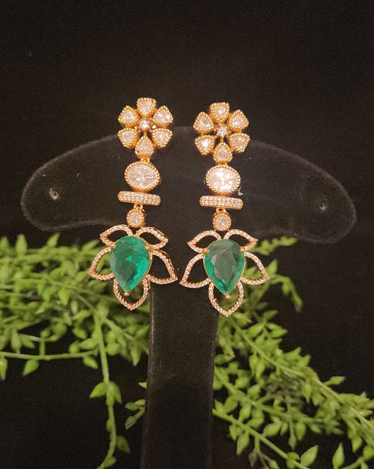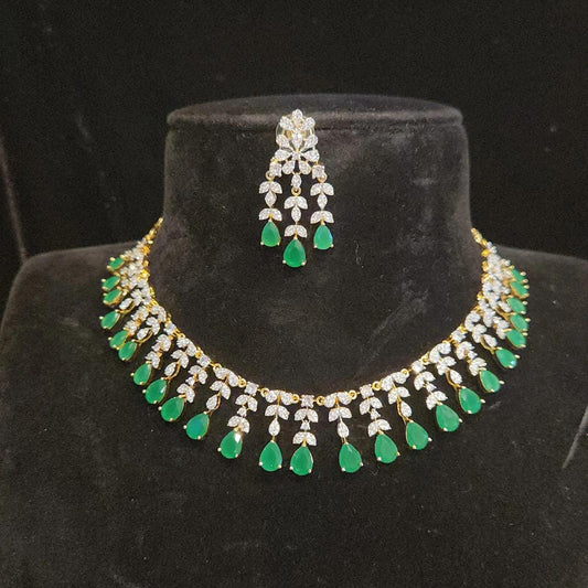 Luxury Diamond Finish Tear Drop Necklace Set in Purple and Emerald colors