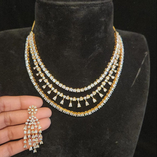 Sparkling Diamond Finish Necklace Multi-Layered Neckset