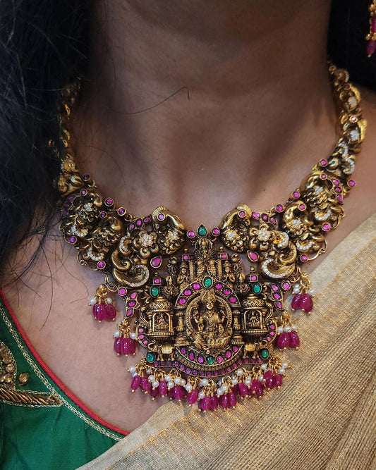 Divine Ashtalakshmi Peacock Antique Nakshi Nacklace Set
