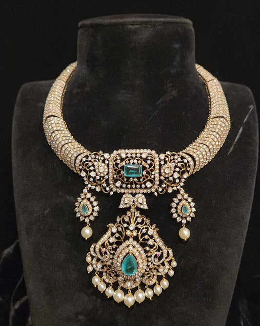 Brilliant Navratan 92.5 Silver Necklace Set