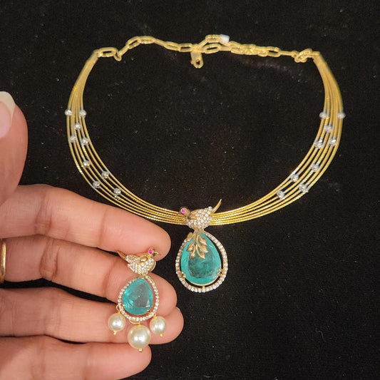 Gold Mesh Necklace with 92.5 Silver Detachable Emerald Pendant
