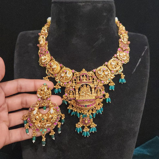 92.5 Silver Necklace Set, Handcrafted Temple Jewelry