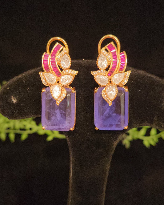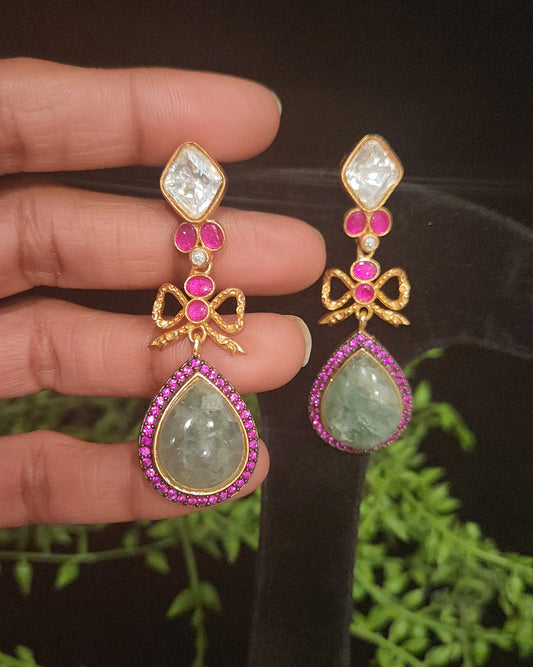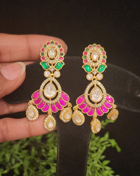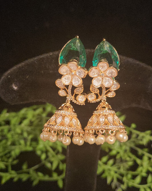 Elegant Floral Tear Drop Kundan and Mossanite Earrings