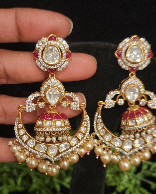 Grand Kundan Chandbali Jhumka with Mossanite stones