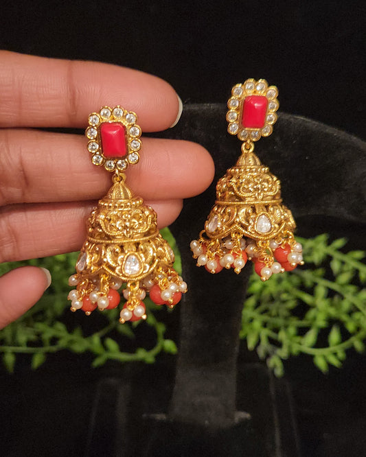 Sold outVibrant Coral Jhumkas