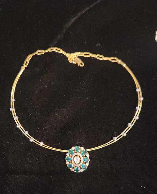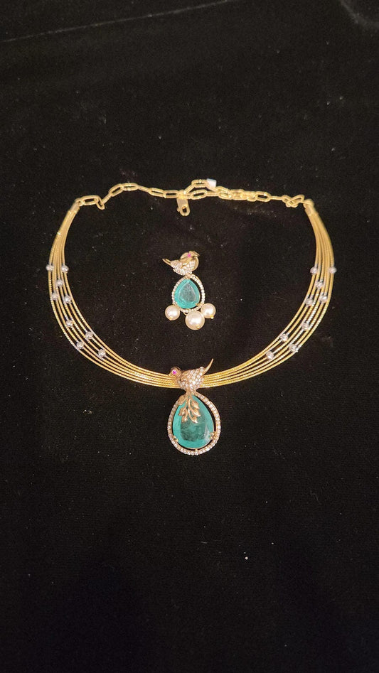 Gold Mesh Necklace with 92.5 Silver Detachable Emerald Pendant