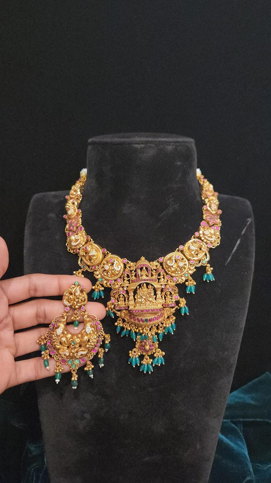 92.5 Silver Necklace Set, Handcrafted Temple Jewelry