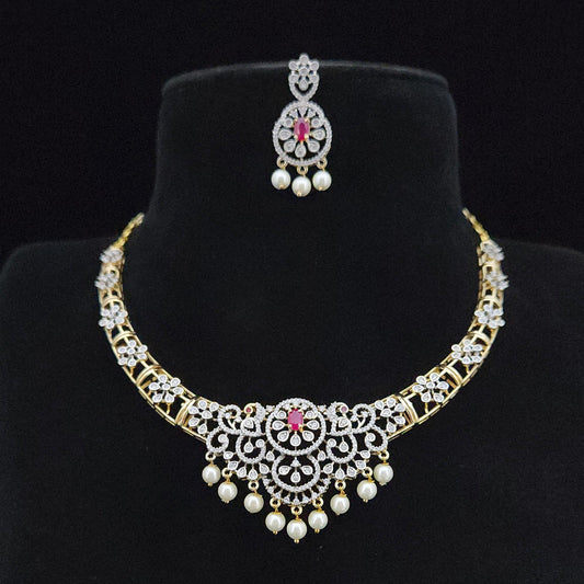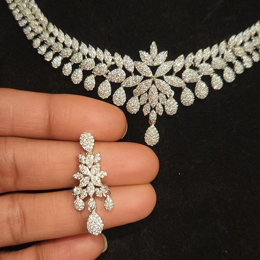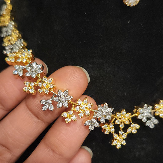 Designer CZ Floral Necklace Set