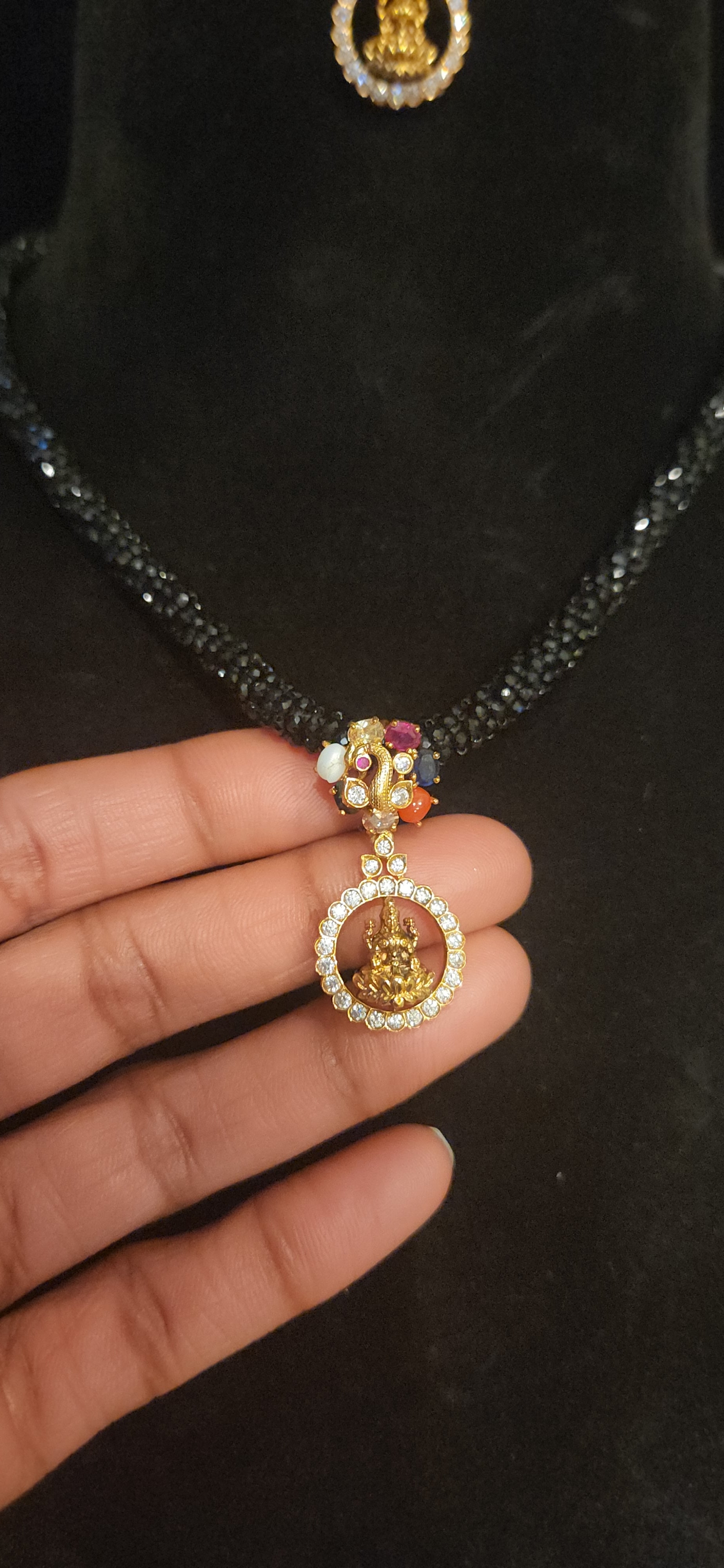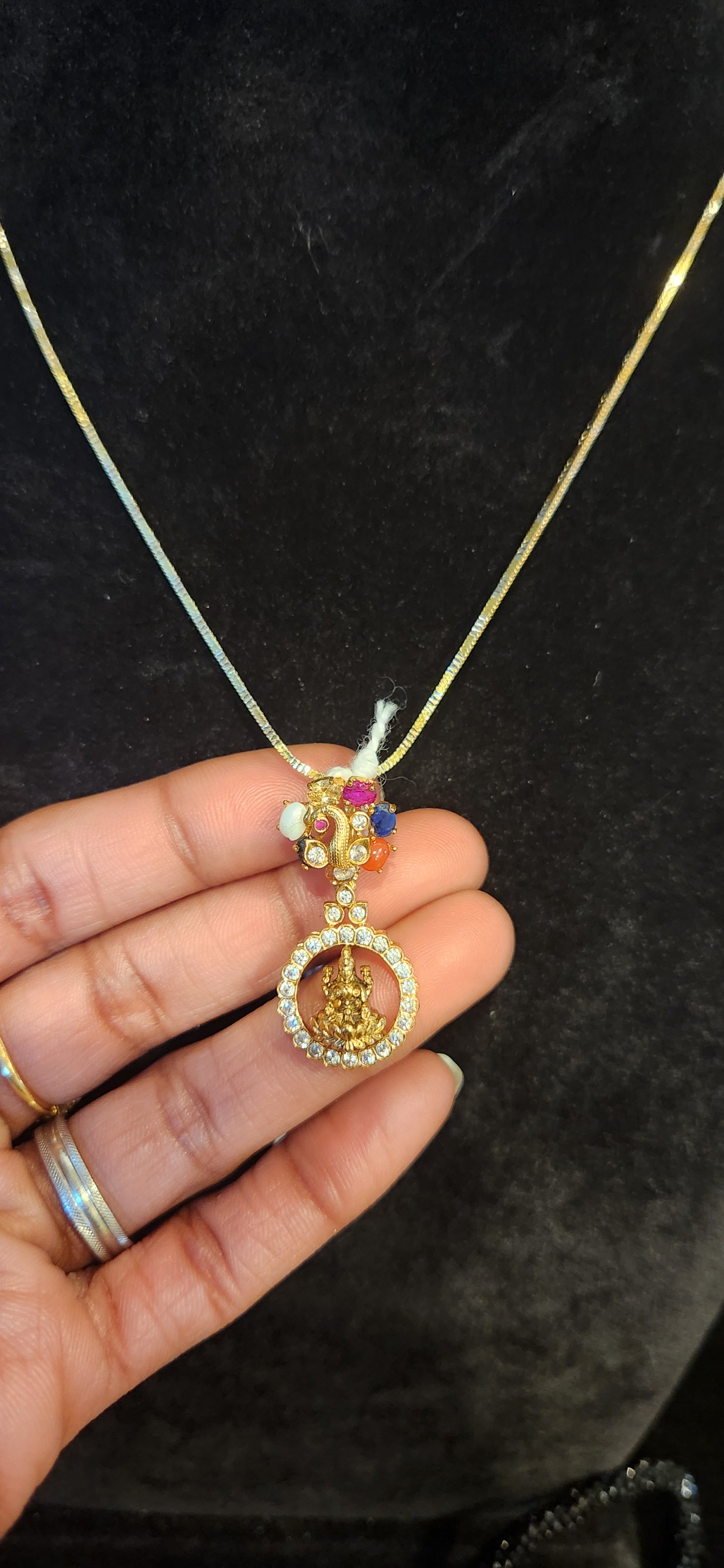 92.5 Silver Lakshmi Devi Peacock Pendant Set