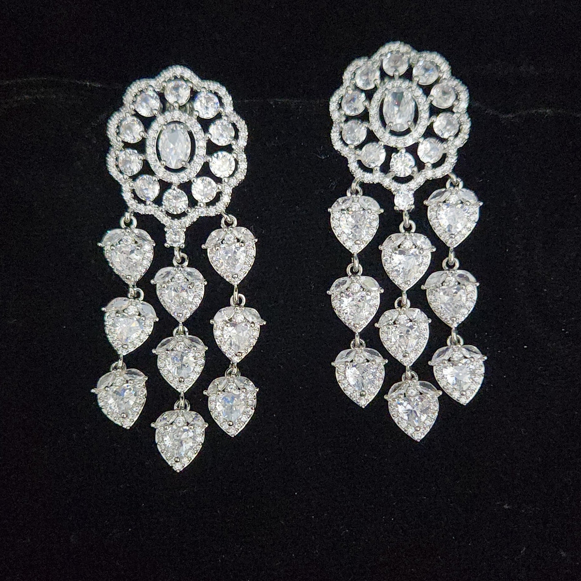 Whimsical Elegance and Sparkle. These designer imitation earrings feature a delicate floral stud crafted with brilliant CZ stones, leading to a unique and playful hanging moissanite strawberry motif. The intricate stone setting provides a high-end diamond-like radiance, making these earrings a perfect choice for those who love nature-inspired jewelry with a modern, stylish twist.