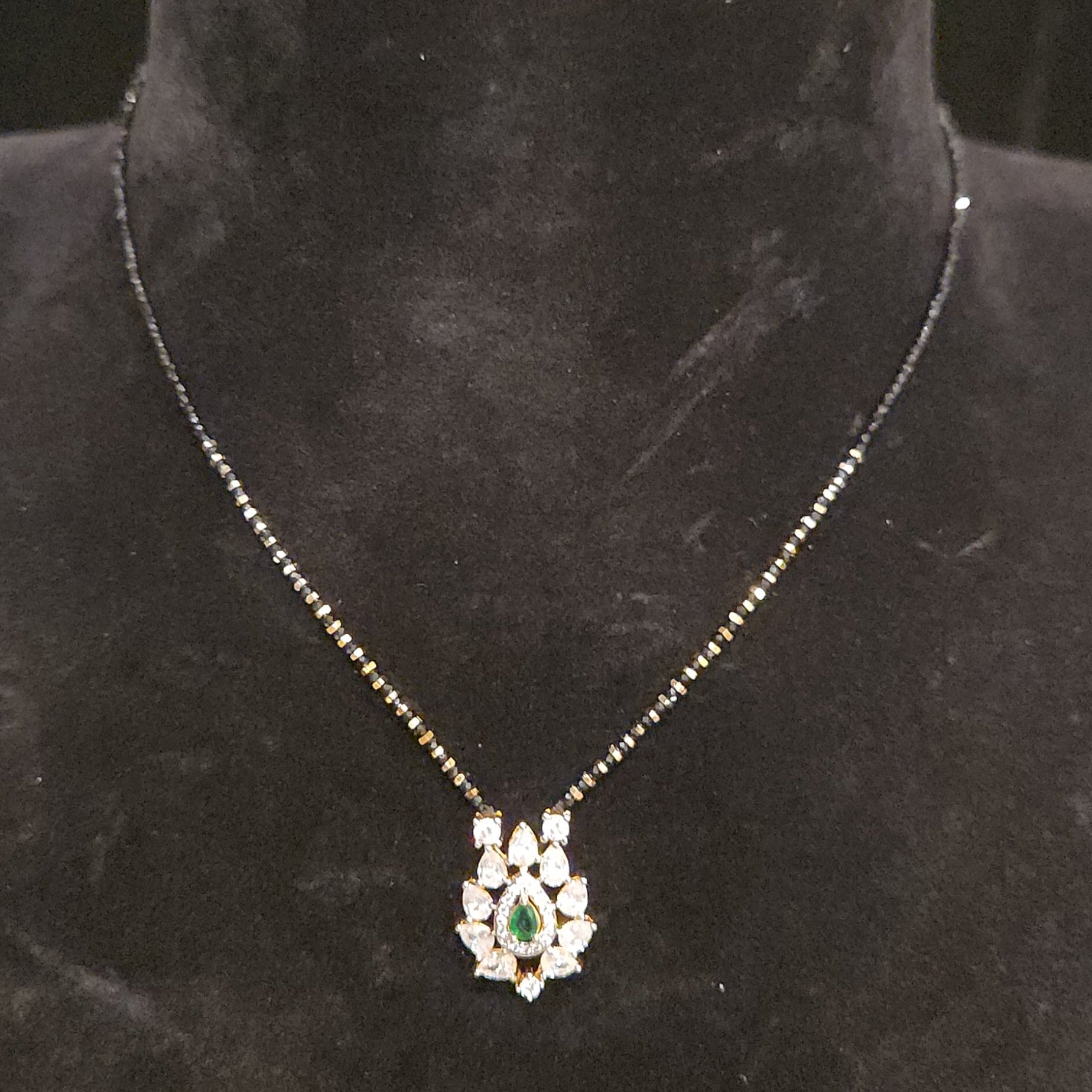 Designer Tear Drop Black Beads with CZ locket