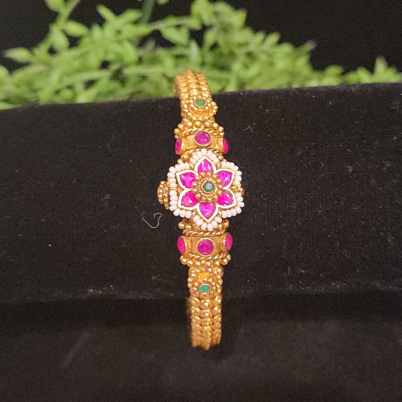 Embody timeless tradition with a modern touch! This exquisite bracelet features an intricate Floral Design set with high-quality Kundan stones and a rich, traditional Gold Finish. Its elegant craftsmanship makes it the perfect accessory for Weddings, Ethnic Celebrations, and Festive Events.