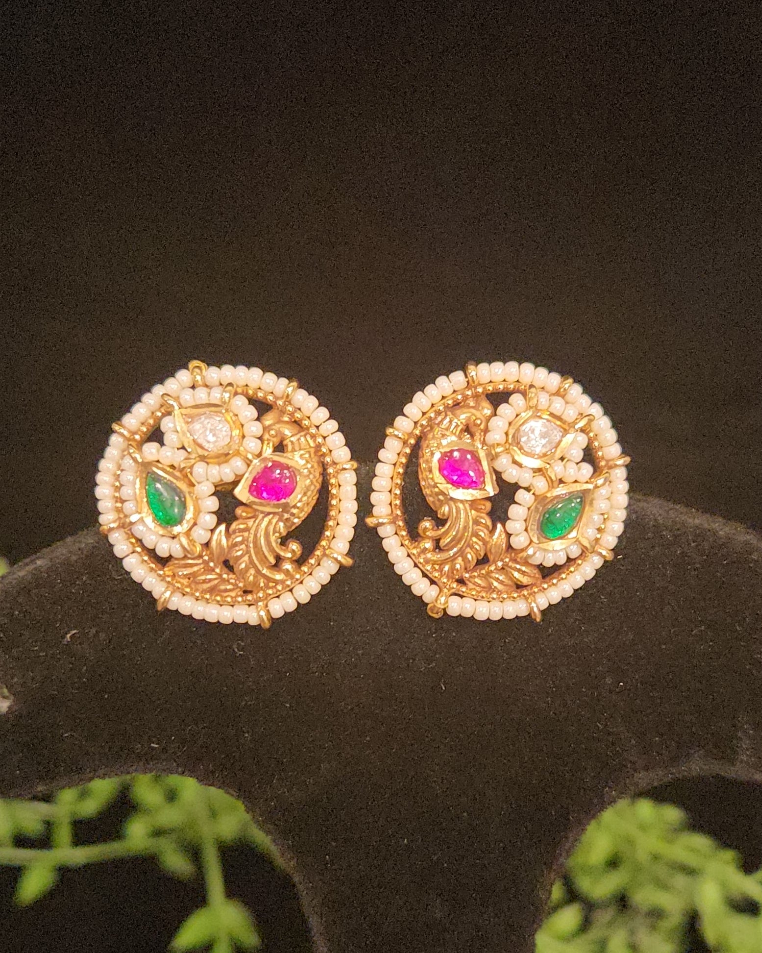 Own This Majestic Traditional Motif! These graceful stud earrings feature the iconic Peacock design, symbolizing beauty and immortality. The detailed metalwork captures the elegance of the beloved bird. Perfect for Festive Occasions, Casual Gatherings, Cultural Events, or Gifting Purposes.