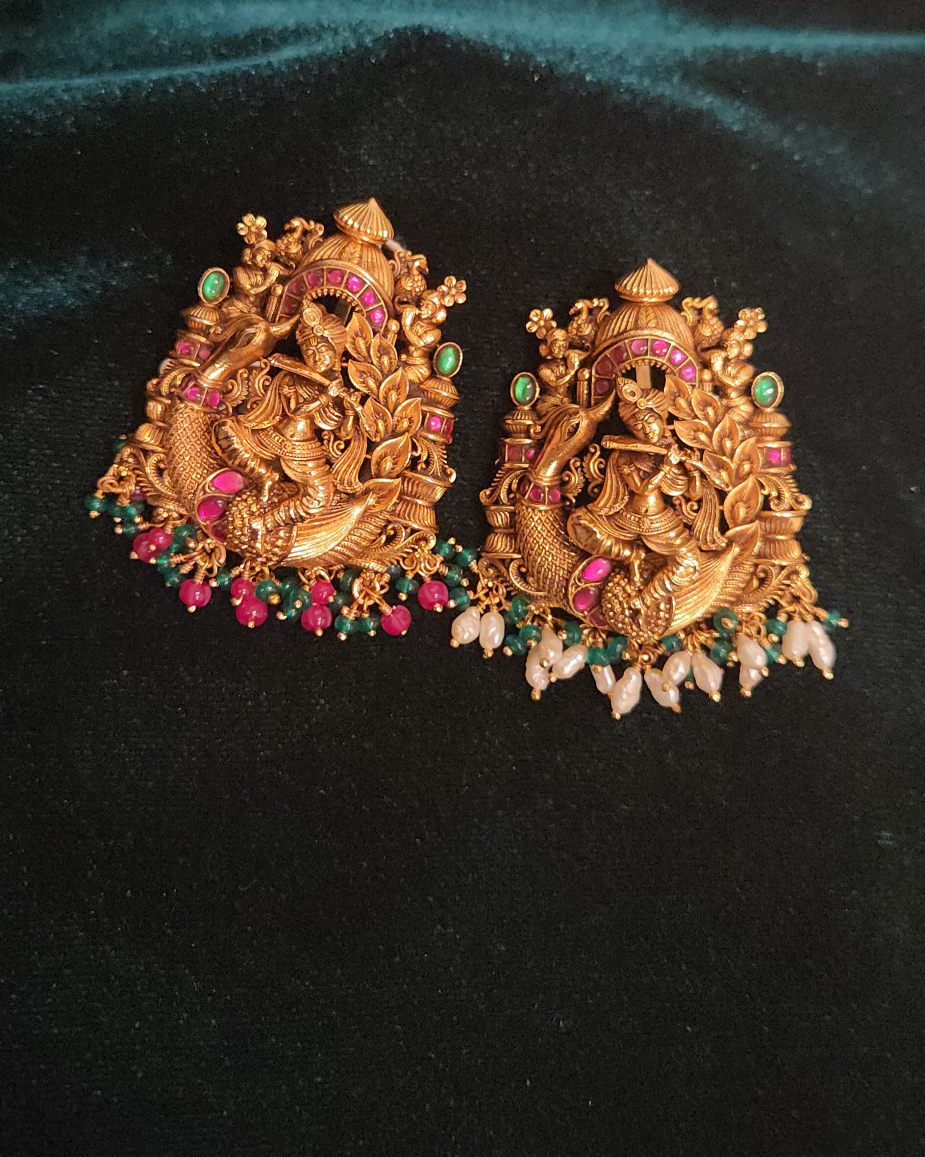 Want versatile style with nature’s charm? A stunning 92.5 silver necklace featuring an intricately crafted Krishna peacock pendant, adorned with vibrant multicolor beads and nakshi finish. A perfect blend of tradition and elegance for festive and special occasions.