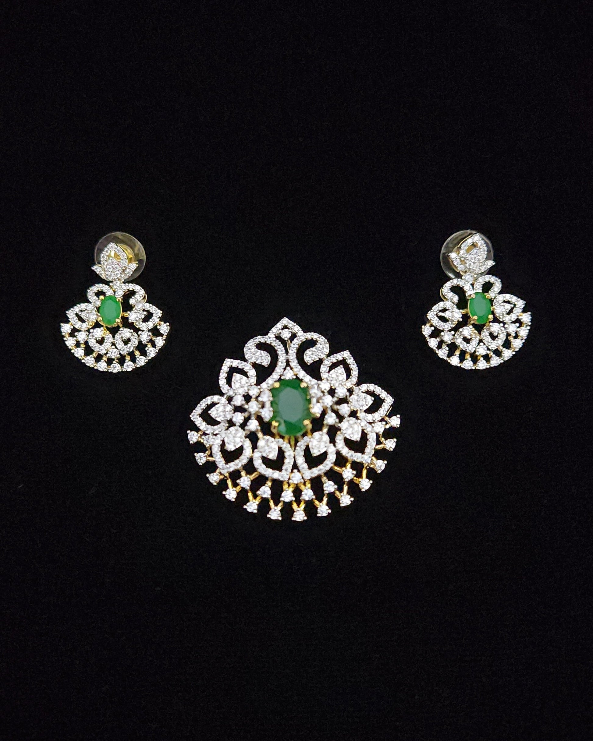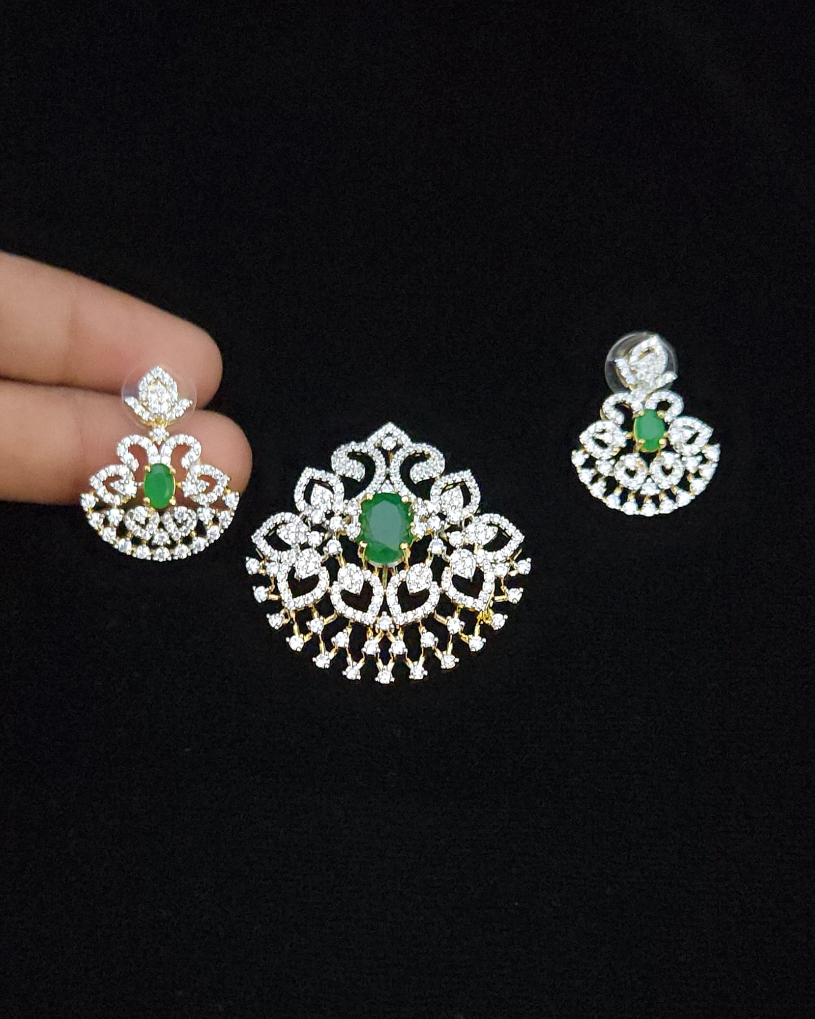 Achieve high-end diamond sparkle with timeless floral design! This Brilliant Pendant Set features a stunning Diamond Finish, giving it intense luminosity. The intricate Floral motif is classic and elegant. The set includes Matching Earrings, perfect for adding subtle glamour to any occasion.