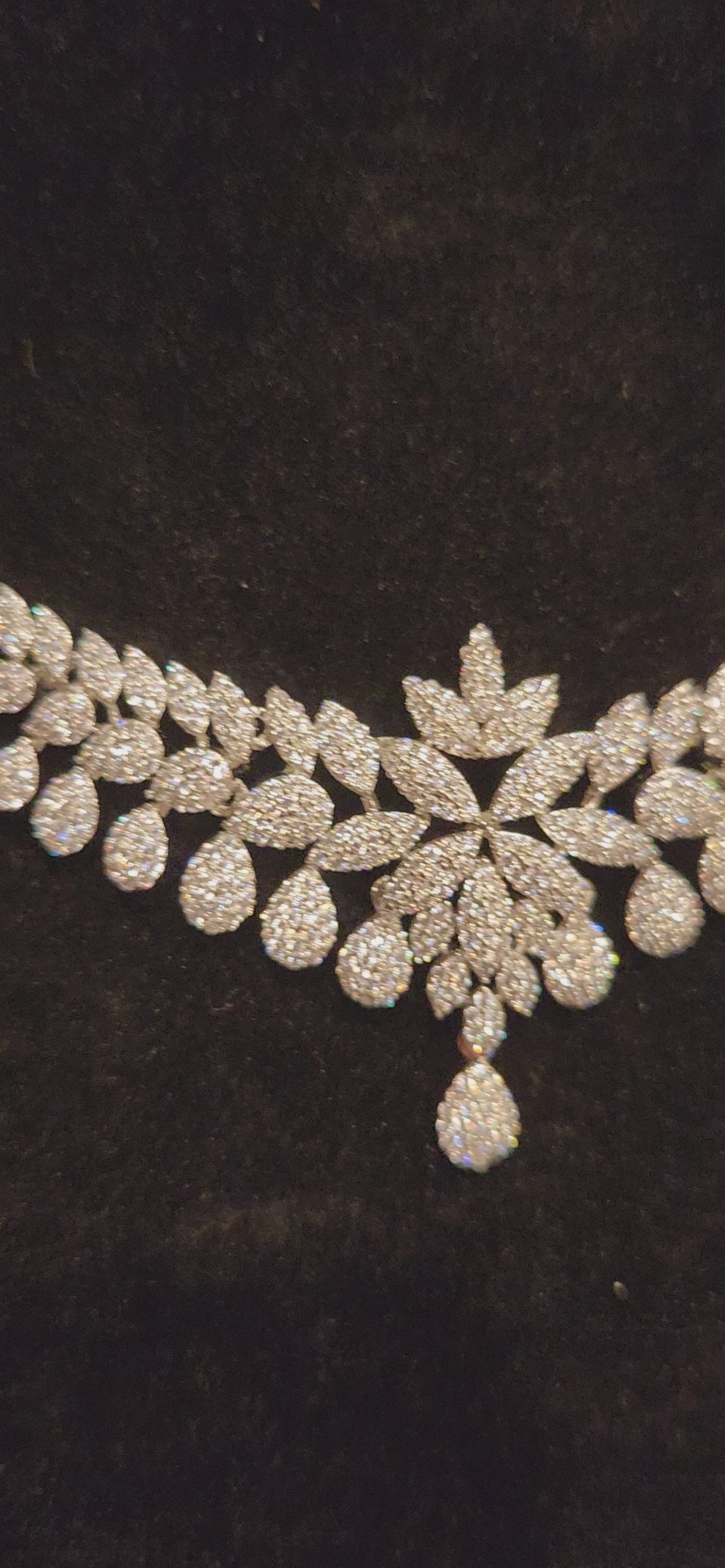 Looking for delicate, natural sparkle? This exquisite CZ Necklace Set features a graceful Leaf and Drop Design with perfectly matching earrings. It's the ideal subtle accessory for Office Wear, Daytime Events, or Casual Dinner Parties.