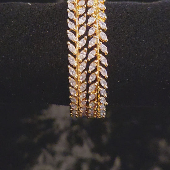 A miniature bangle with nature-inspired sparkle! This Brilliant Kids Bangle features dazzling CZ stones set in a delicate Leaf design. It offers a sophisticated shimmer, perfect for adding a touch of elegance to any child's outfit for a special event.
