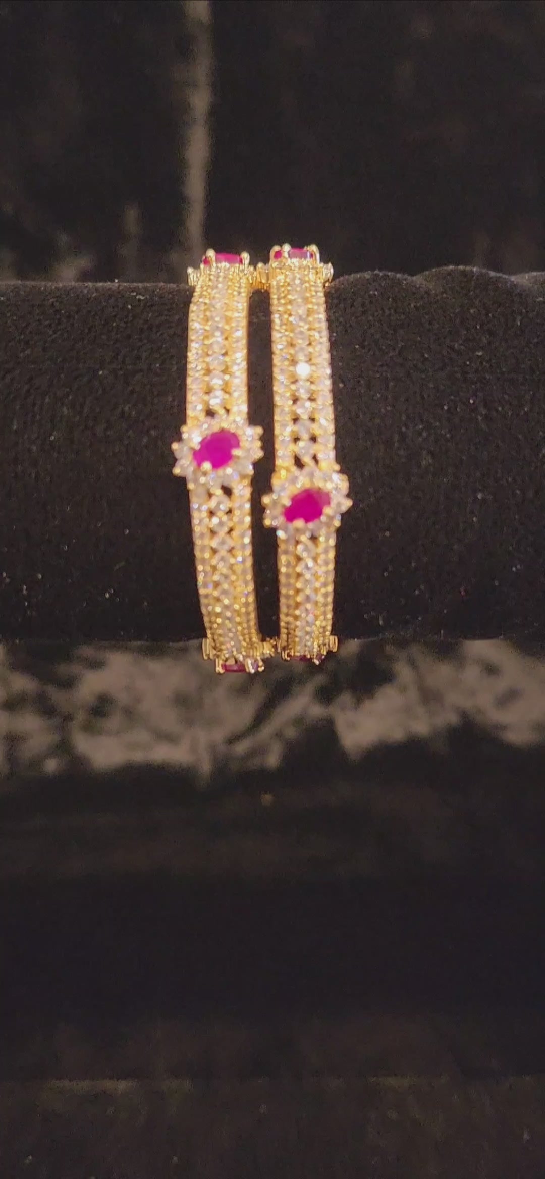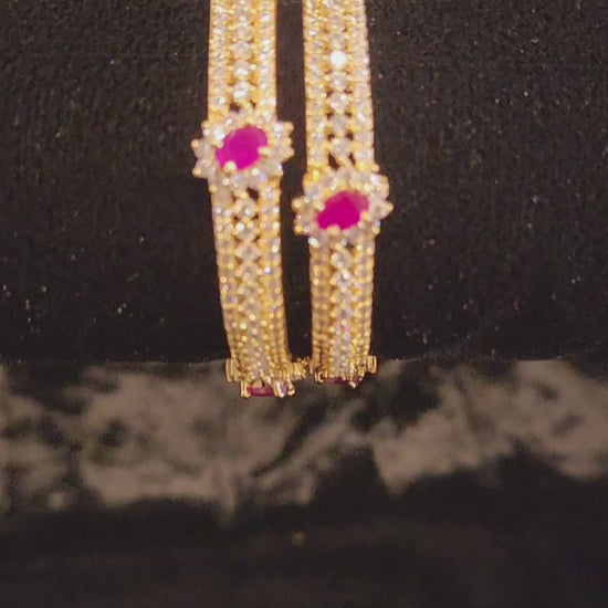 Dazzling sparkle made easy for little hands! This Bangle features brilliant CZ stones paired with vibrant Ruby accents. The hinged design ensures easy and comfortable wear. Perfect for adding a simple, festive sparkle to any children's outfit.