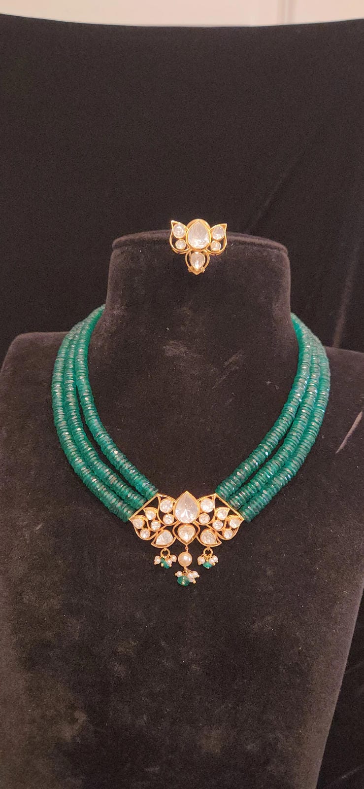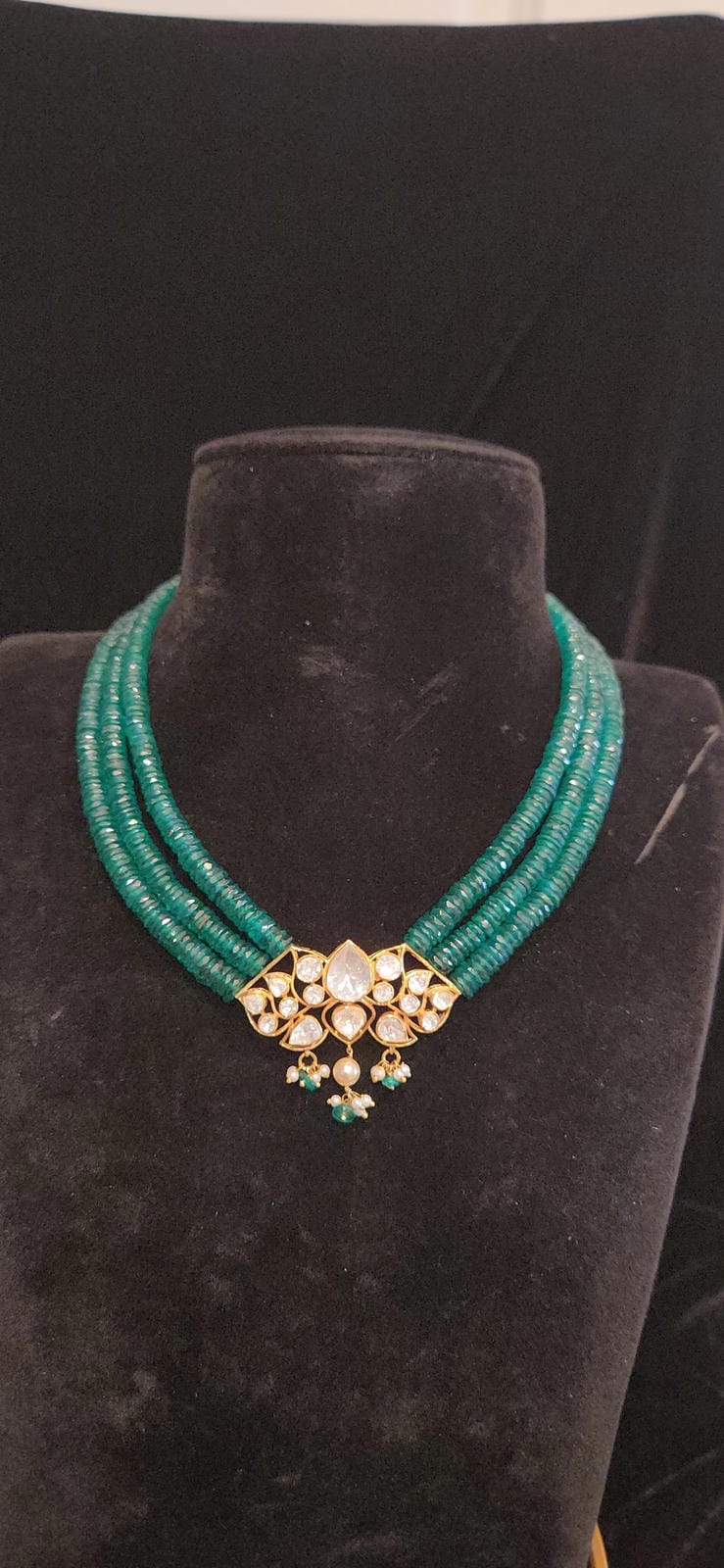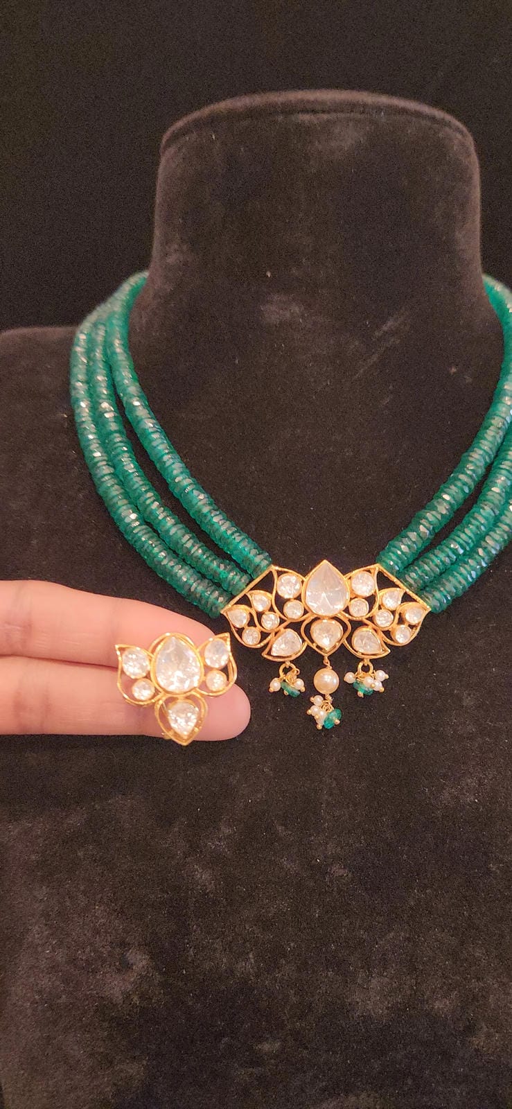 Luxurious Polki Moissanite Lotus 92.5 Silver Pendent Precius Beads Mala